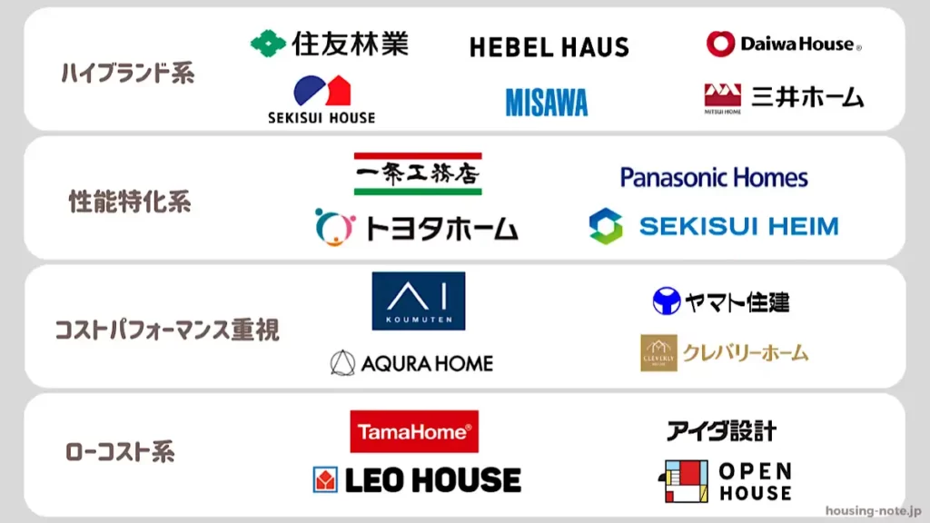 性能重視のハウスメーカー各社の概要